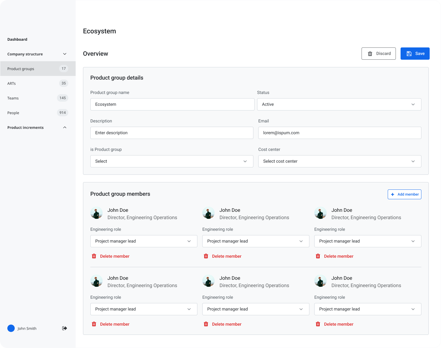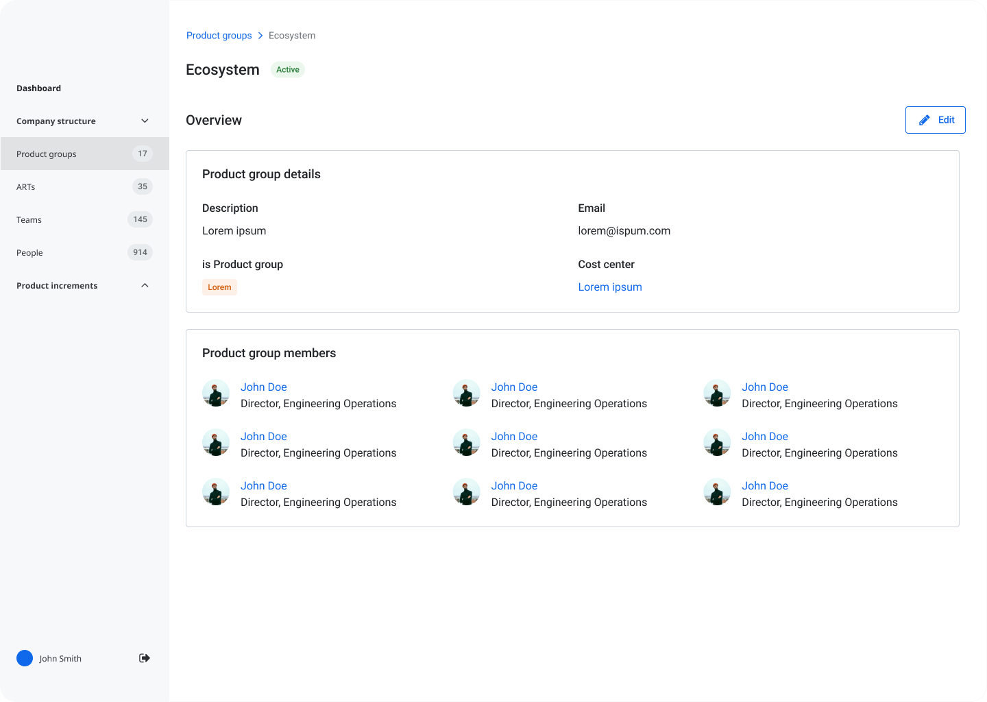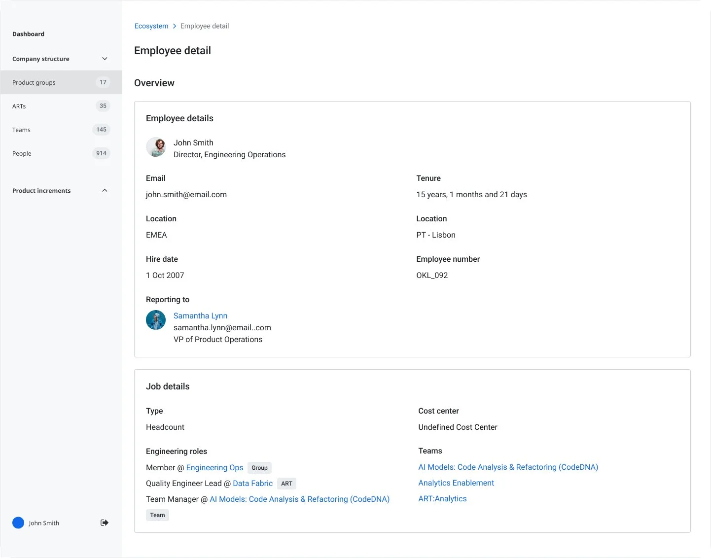 The Engineering Organisation Management (EOM) tool is an internal application developed for managing and structuring the Engineering Department, as well as building the current and future Product Increments.