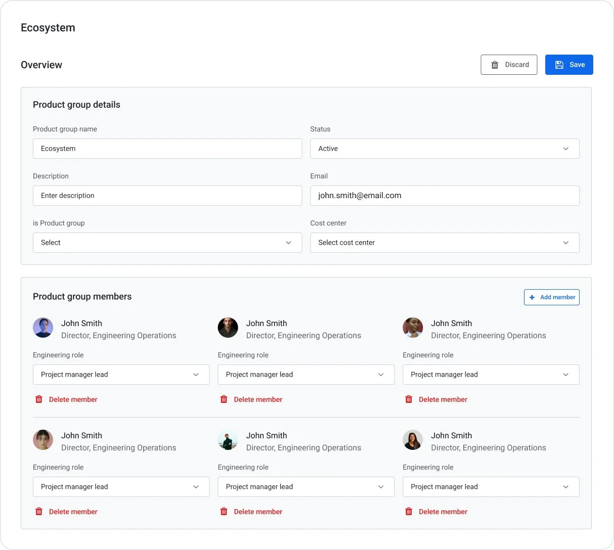 Key user flows within the platform included adding, editing, and removing team members, as well as creating and managing the structure of PIs.