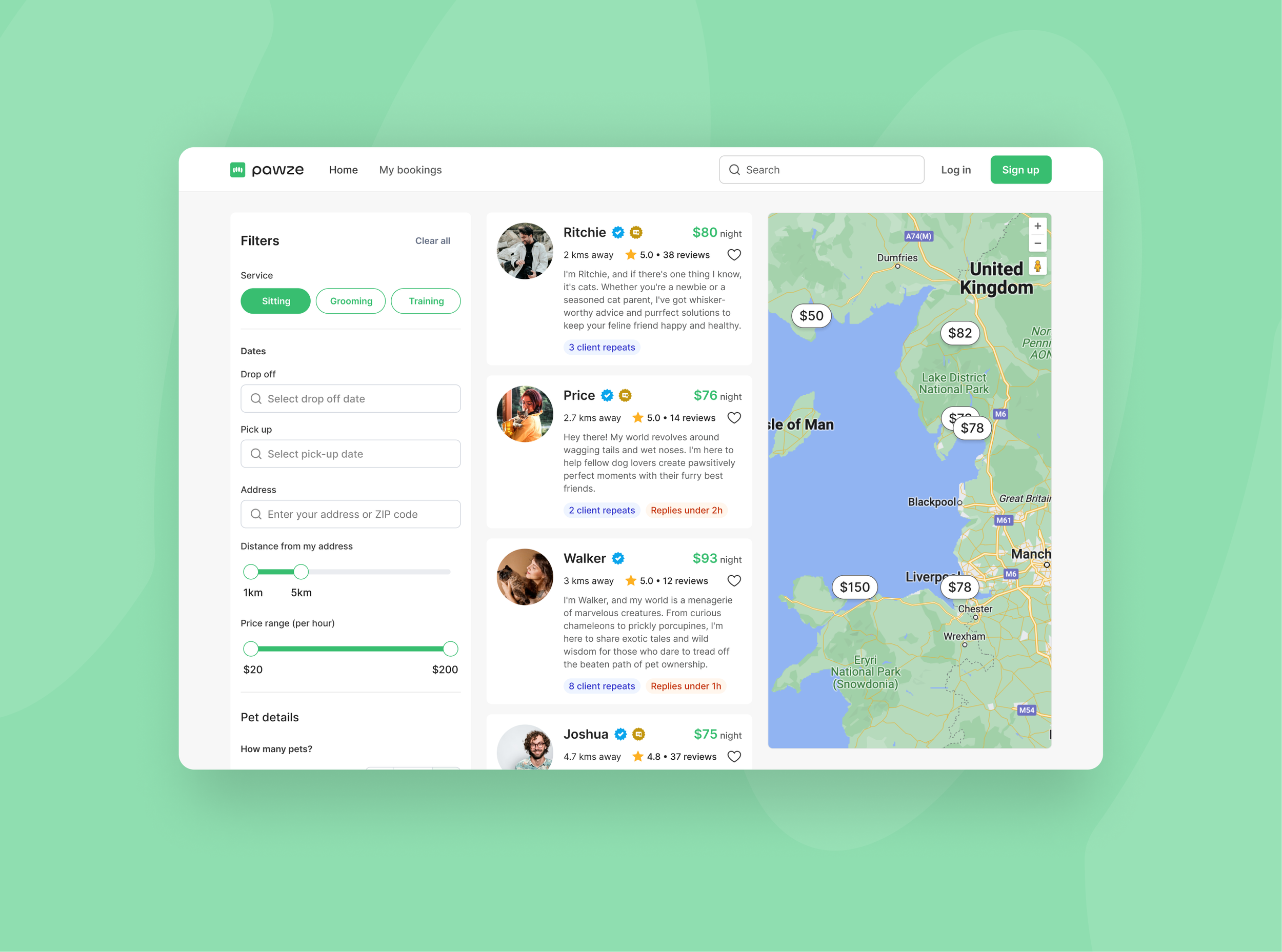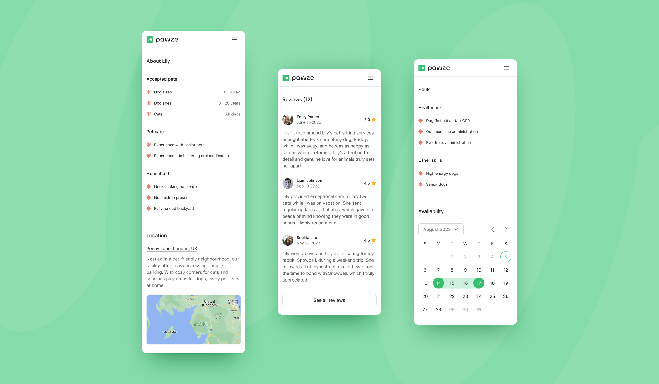 Pawze is a multi-platform app that provides a complete solution for both pet service providers and owners.